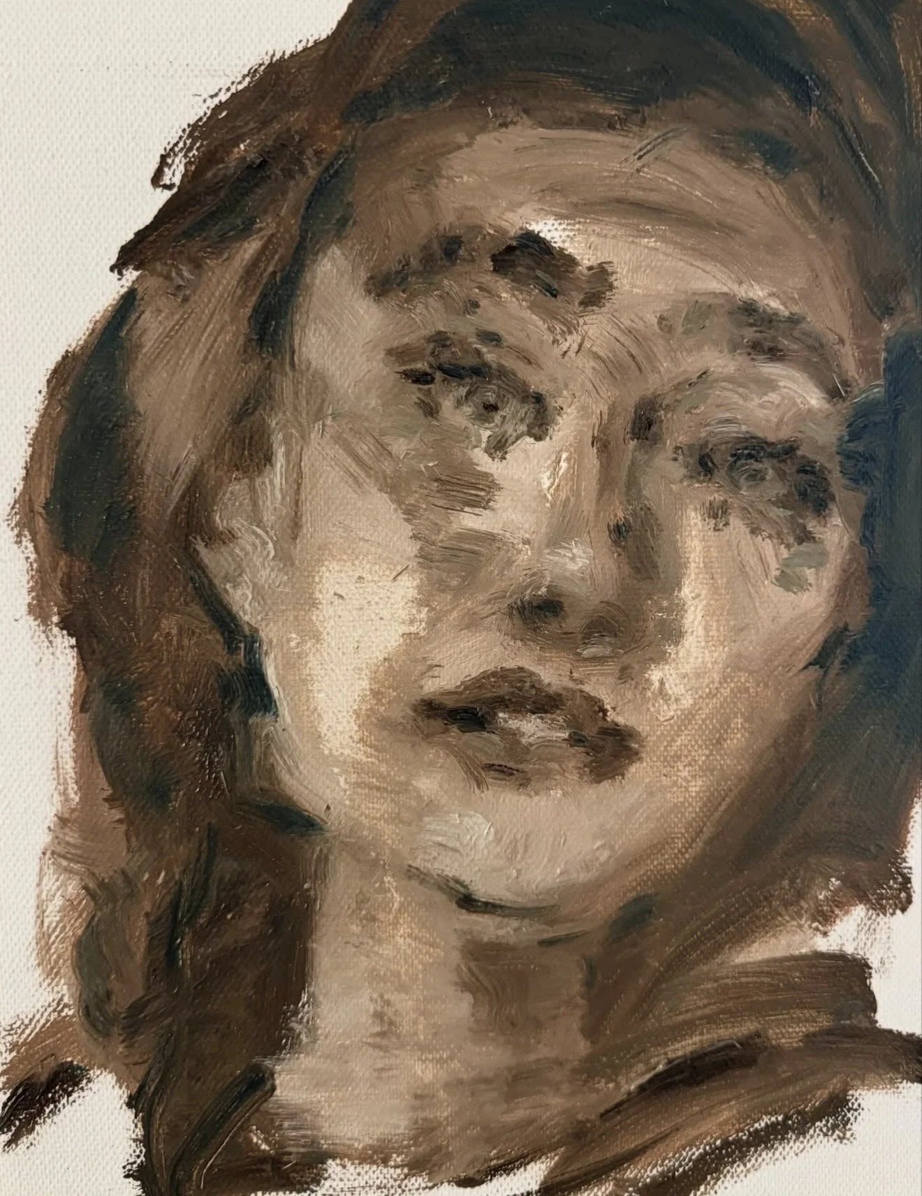 Through a restrained palette, layered textures, and expressive brushwork, Niloofar translates lived experience into moments of stillness. Her work does not seek resolution, but recognition—inviting the viewer to pause, feel, and encounter the human presence beneath the surface.